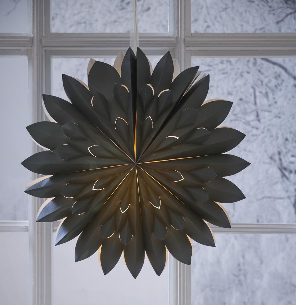 Enkel og fin papirstjerne med elegant bånd for enkel opphenging. Gir hjemmet den spesielle julefølelsen. Heng den i vinduet eller mot en vegg. Kjøp til ledning og lyskilde for belysning i stjernen.