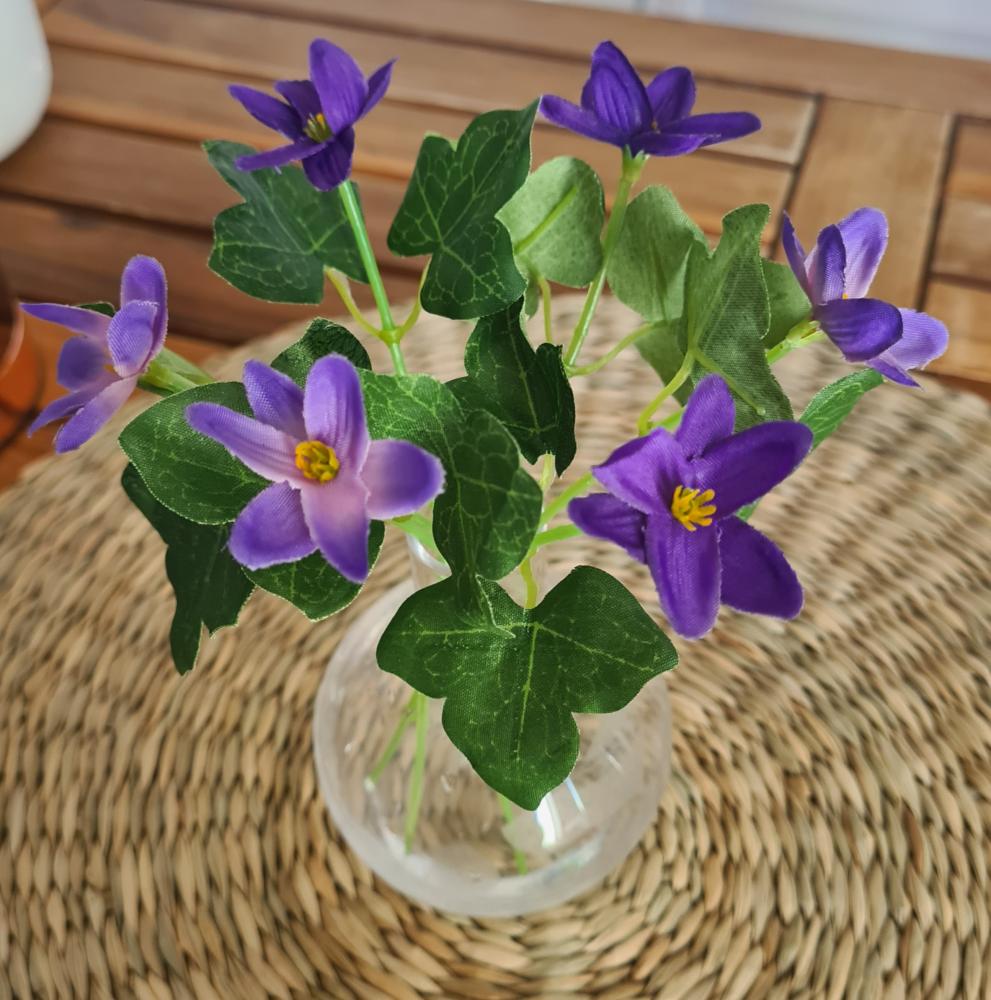 Fantastisk bukett med blåsippa. En mindre variant. otroligt naturtrogen och välgjord. Blev en fin detalj i mitt vardagsrum.