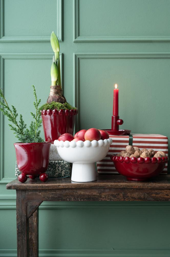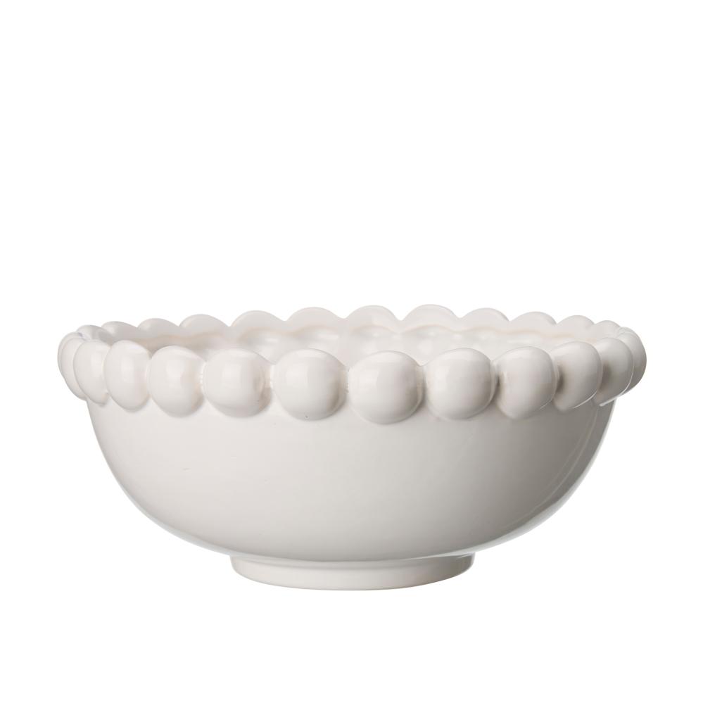Hvit stor bolle som også kan brukes som krukke. Passer perfekt til juledekorasjonen hjemme. Elegant og fin med den boblede kanten øverst. Finnes i to størrelser og flere modeller i samme serie.