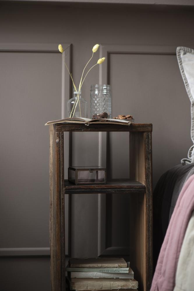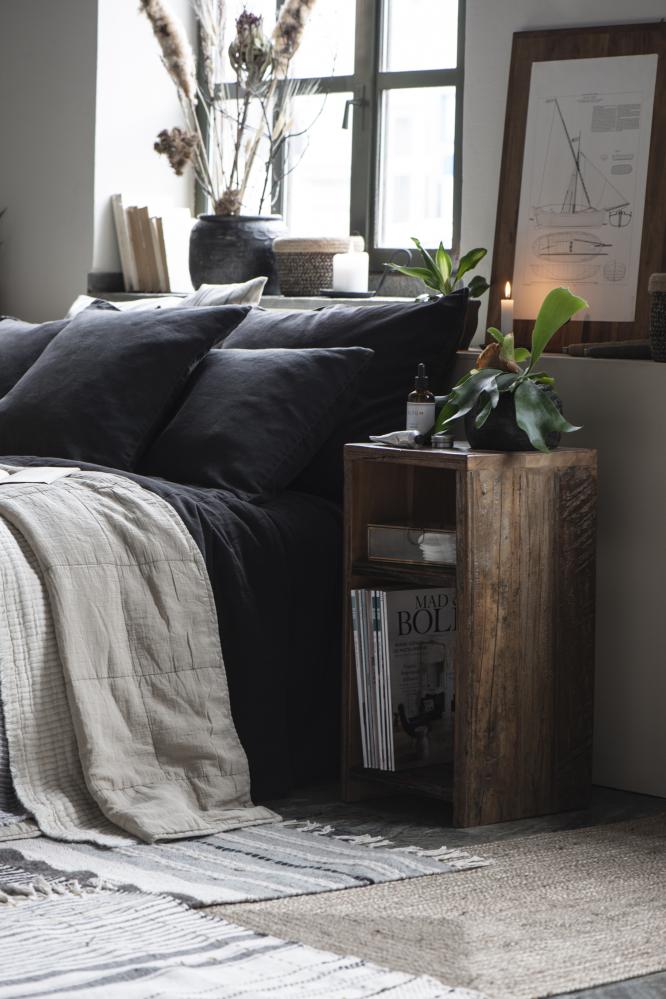 Dette bordet er laget av resirkulert materiale fra India. Det kan forekomme små sprekker, knuter og sprekker i treet, og det er en del av sjarmen synes vi! Passer perfekt som nattbord ved siden av sengen eller stående alene.