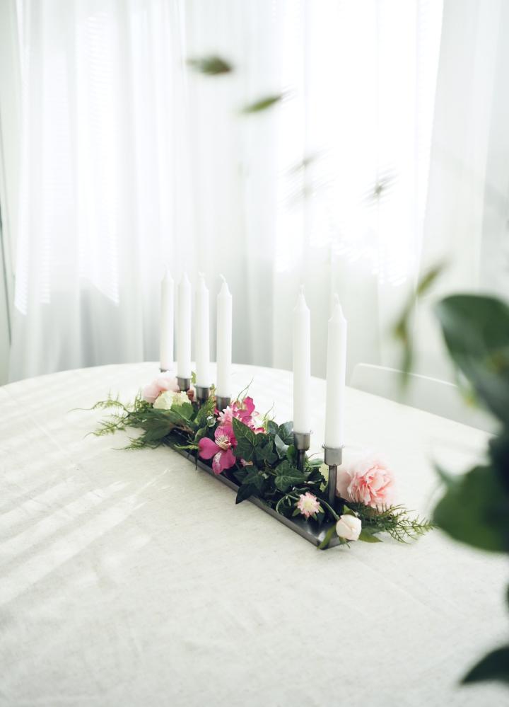 Otroligt vacker och användbar ljusstake som man dekorerar själv efter högtid och årstid.