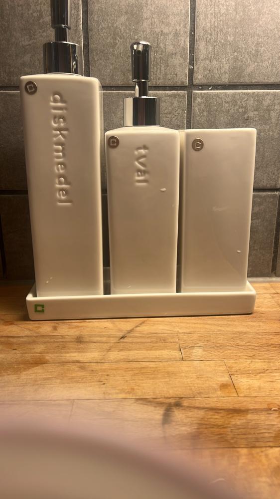 Jättefint set som gör att det ser ordnat ut på diskbänken. Inga tråkiga flaskor som står framme. Passar alla stilar.