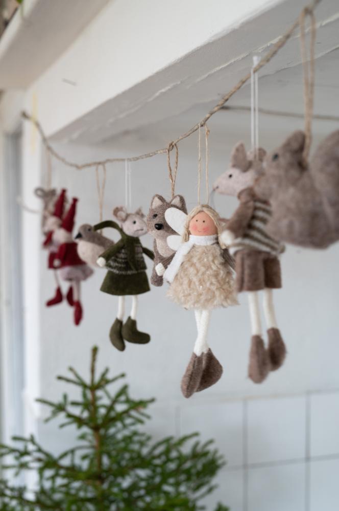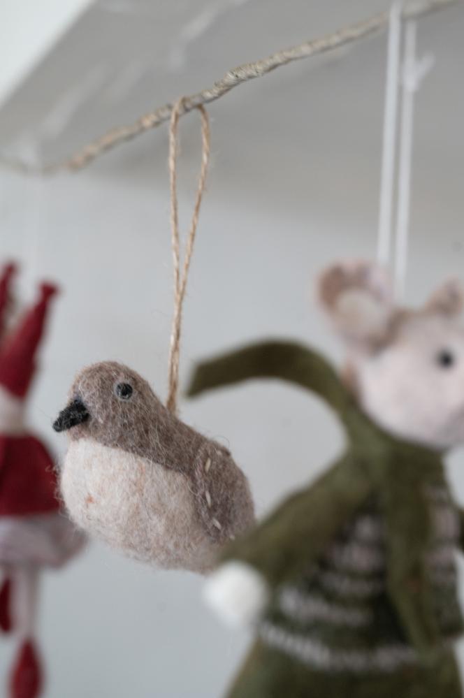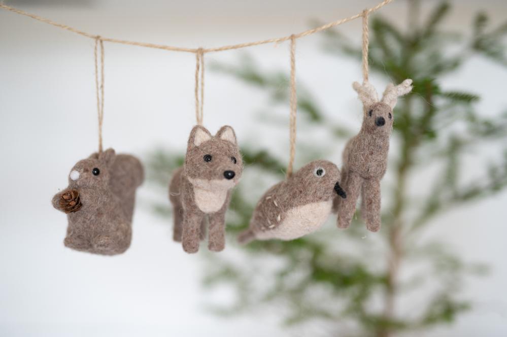 Søte små dyr i ull med et lite oppheng. Perfekte å henge i juletreet, over et vindu eller som en ekstra detalj på julegaven.