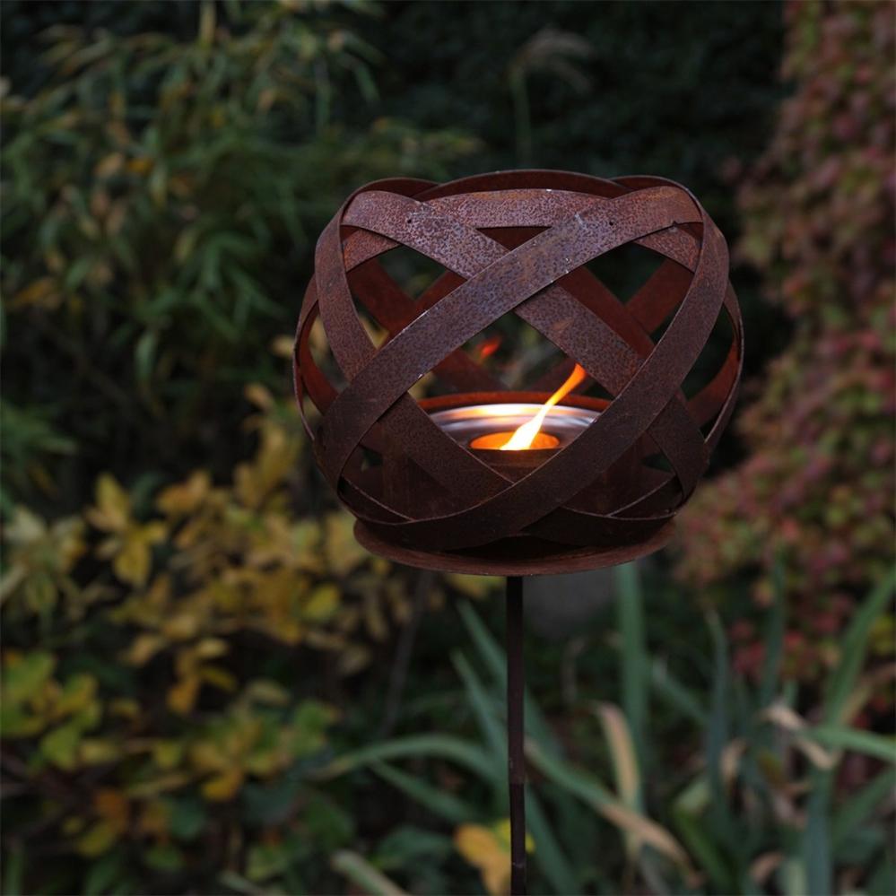 En fakkel med både tyngde og letthet – som fanger blikket, særlig når flere plasseres sammen langs en sti eller ved inngangen.