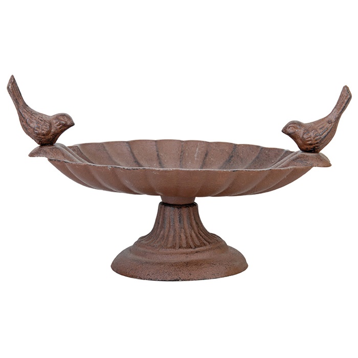 Fuglebad - Støpejern med to fugler som sitter på kanten.