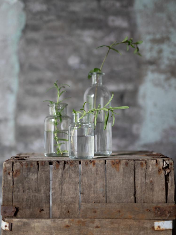 Søte små glassvaser. Rundede kanter gir dem et rustikt preg og gjør dem også praktiske, da de blir mer slitesterke mot små støt og man unngår å skjære seg på skarpe kanter. Bobler og merker forekommer, og det er en del av sjarmen. Disse vasene og flaskene er virkelig Frøken Fræken-favoritter. Så fine å bruke både til blomster og som små lysestaker. De er også flotte å ha tomme som dekorative innredningsdetaljer.