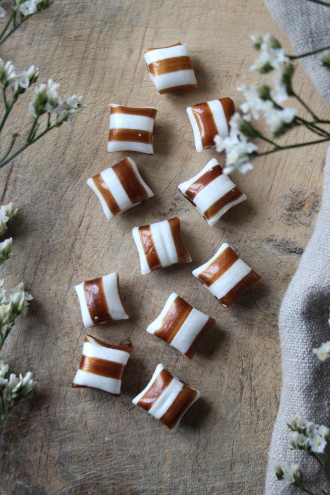 En helt herlig liten godiseske med karameller med smak av fløtekaramell og teksten "Godbiter til en fantastisk frøken, lærer, pedagog, mentor, forbilde".