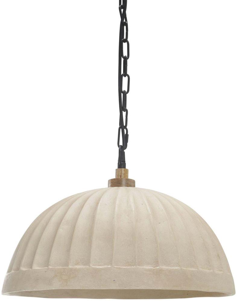 Taklampa Haley ær tillverkad av ett keramikliknande material baserat på återvunna material, sk ekomix. En klassisk form med breda ræfflor og en slæt bård nedtill. Beige. Diameter 43cm, høyde 34cm. 1,3m svart metallkedja og 1,5m svart plastkabel og svart takkopp i metall for krokupphæng. Takkoppens diam. ær 11cm. E27 sockel, max 40W. IP20. Ljuskælla og takkontakt ingår ej. Denne lampe ær tillverkad for hand vilket gør att varje lampe blir unik. Det kan førekomma variation i størrelse.