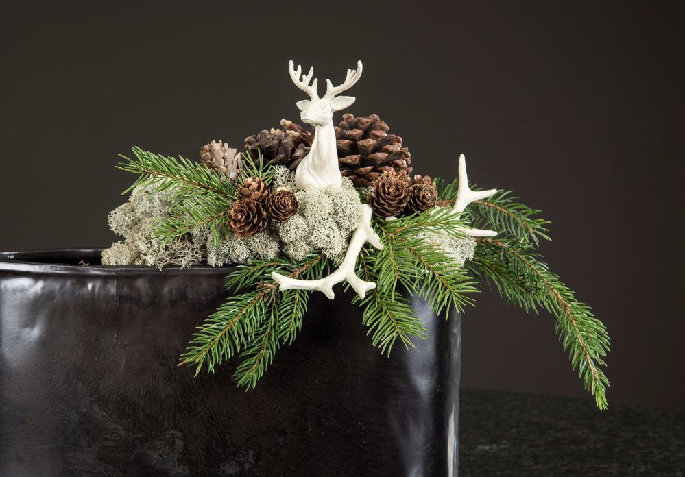 Hjort på stick. Superfin dekorasjon å stikke ned i julegruppen, adventsstaken eller julepynten.