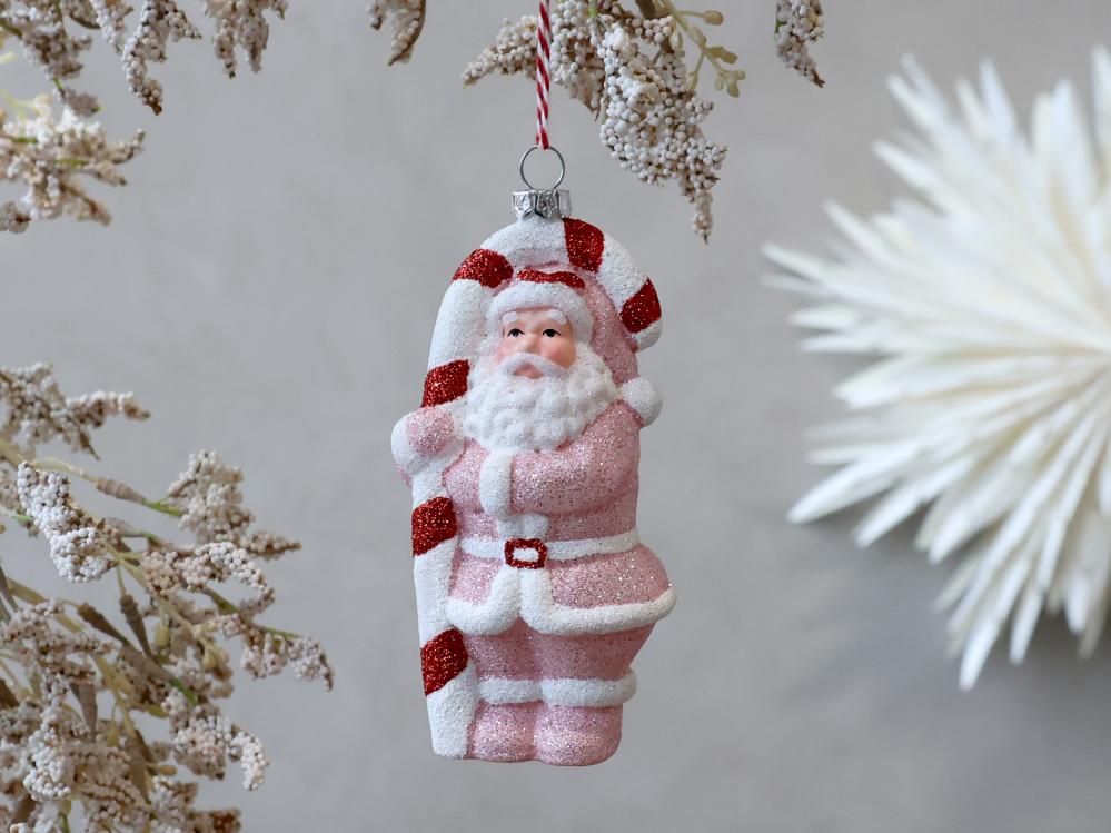 En håndmalt julekule fra serien Candy. Denne forestiller en nisse som holder en polkagrisstang. En søt og morsom detalj å henge i juletreet.