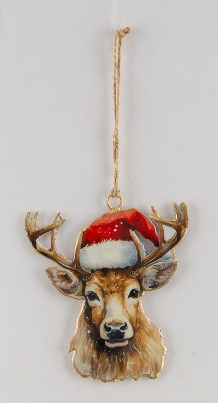 Vakkert juletreanheng. Dette er laget av keramikk og forestiller en rein med nisselue. Keramikken gir anheng et eksklusivt utseende, så det er vakkert å henge det på en egen krok, men også en fin gave.