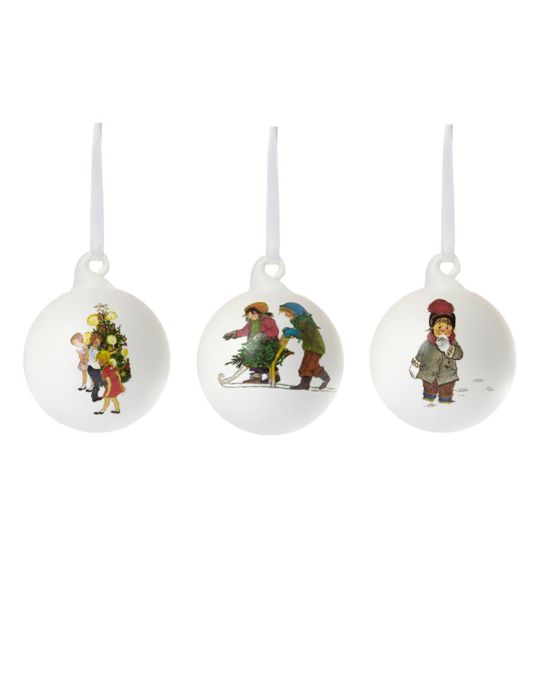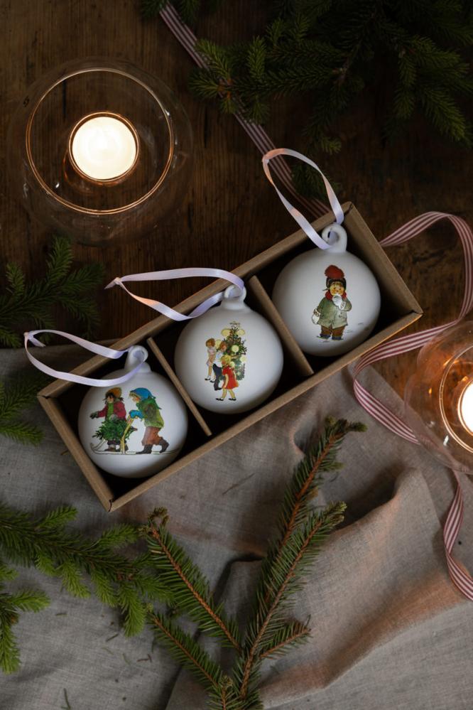 Å gjenopplev julemagien med Barna i Bakkeby-julekuler!Disse høykvalitets julekulene i hvitt glass fanger den landlige og idylliske julefølelsen fra Barna i Bakkeby. Et sett med 3 vakre julekuler, hver prydet med hjertevarmende motiver av de kjære barna, tar deg tilbake til en tid da julen var fylt av uskyldig glede og forventning. Julepynt av beste kvalitet! Så vakre at de kan henges på juletreet eller brukes til stemningsfull dekor på det dekkede julebordet. Å pynte kransen med disse og noen av våre kunstige girlandere er superflott. Eller til kreativ juleverksted på julegaver, kort, dekor i lysekroner, i julegrupper og juleblomster.Fröken Fräken selger vakre og nostalgiske juledekorasjoner til både slott og koja! Og akkurat julekuler har vi et stort utvalg av. Vi har store og små. Med og uten oppheng. Noen modeller har en ståltråd eller pinne for å stikkes ned i en julebukett eller for å festes på en lysestake.