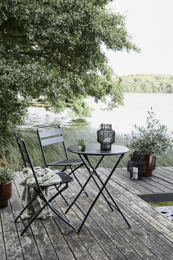Skap en uformell, kafé-liknende krok i hagen eller på balkongen med dette Helo-settet fra House Doctor. To stoler og et bord gir deg en perfekt plass for avslapning. Jernet har fått et mørkegrønt pulverbelegg for å gjøre det moderne og passende for alle hjem. For å spare plass i små områder kan du enkelt slå opp bordplaten og brette sammen stolene når de ikke er i bruk. Fullfør borddekoren med puter og dekorer bordet med lysestaker for å få en innbydende og herlig følelse. For å forlenge levetiden bør du ikke la Helo stå ute i regn eller kulde, men flytt den innendørs for sikker oppbevaring.