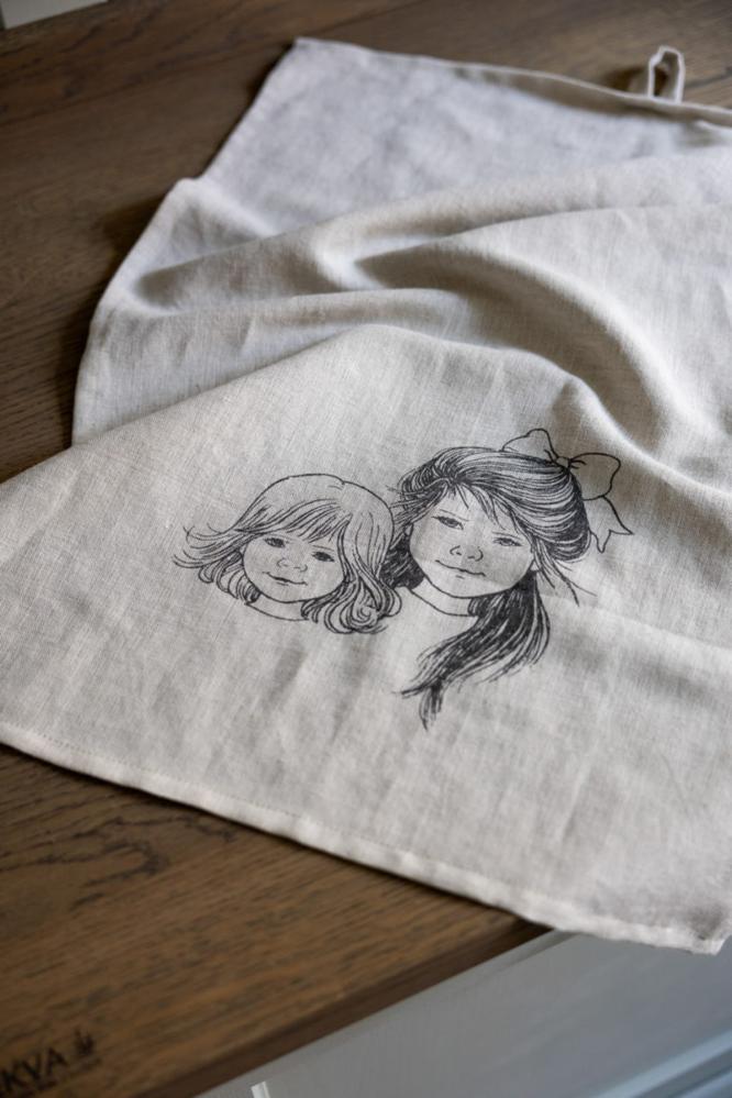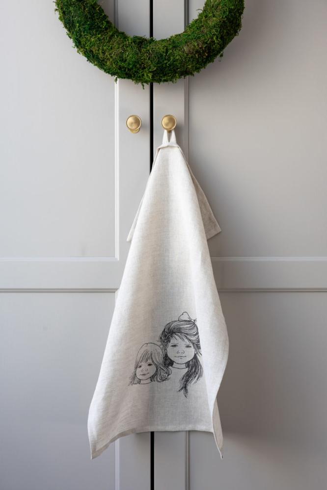 Det finnes tre ulike motiver av dette kjøkkenhåndkleet som er laget av en linblanding av 50% bomull og 50% lin. Håndkleet har en praktisk hempe og er like fint å ha hengende på kjøkkenet som liggende på julebordet. Denne serien fanger virkelig den landlige og idylliske julefølelsen prydet med hjertevarmende motiver av de kjære barna som tar deg tilbake til en tid da julen var fylt av uskyldig glede og forventning. Nostalgisk julepynt av beste kvalitet! Så vakkert!