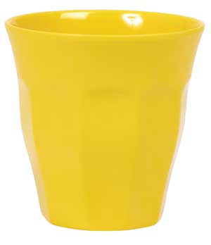 Kopp i melamin fra Rice. Stilig gul kopp. Bruk den som en glad kaffekopp, på barnebursdag eller piknik. Morsomt å blande farger på kopper, skåler og fat for en ekte Pippi Langstrømpe-følelse!