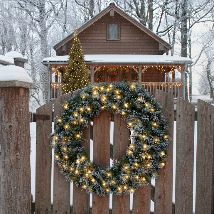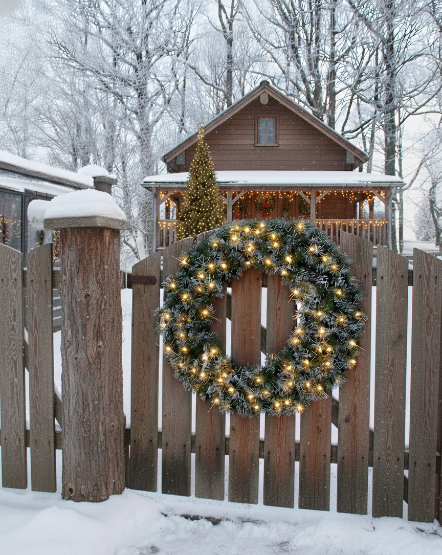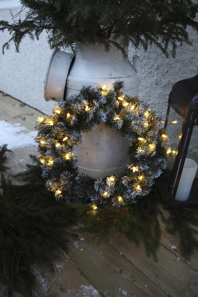 Jag är mycket nöjd med kransen som passar perfekt över vår öppna spis. Lamporna lyser lagom mycket.