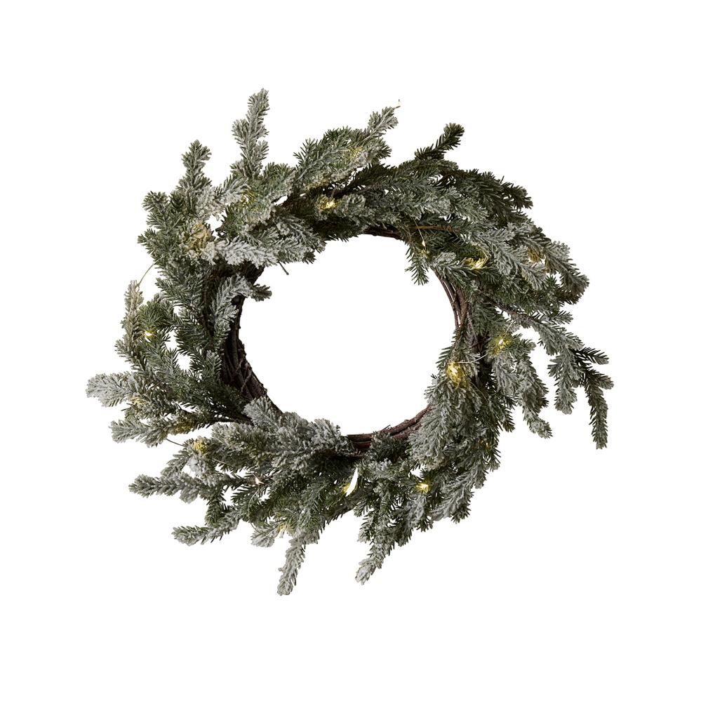 Stor og fantastisk vakker krans i granbar med belysning – En utrolig fin og naturtro krans med LED-lys! Heng den som dørkrans på en større ytterdør, på husfasaden eller utenpå vinduene på huset. Eller bruk den innendørs som veggkrans i gangen eller over sofaen i stua.