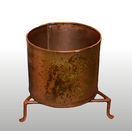 Supersøt krukke i forgyldt kobber. Står på en stativ med 3 ben. Hvis du vil ha levende planter i denne, anbefales det å legge en plastpose i for sikkerhets skyld.