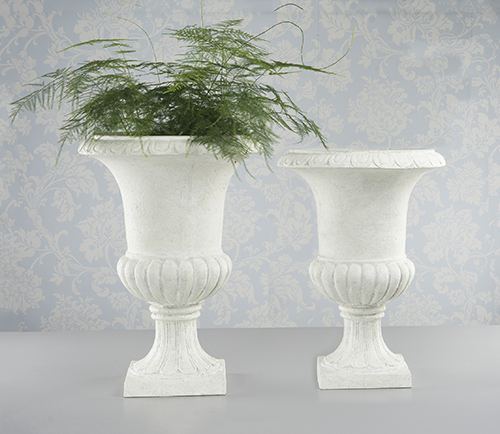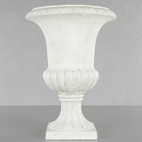 Vakker kremhvit romantisk krukke på fot, en såkalt pokalkrukke. Denne krukken er laget av polystone, en blanding av betong og plast som gjør den veldig holdbar og vanntett. Fargen er kremhvit og den er vakkert slitt i shabby-vintagestil og passer godt inn i både landlig innredning, bohemiske hjem, men også som en innredningsdetalj i mer stilrene hjem. Den er virkelig prisgunstig synes vi på butikken Frøken Frøken her i Sundsvall, og da er vi erfarne blomsterdekoratører og har sett en hel del krukker og blomster i våre dager :-) Denne typen krukke er også perfekt å ha utendørs på terrassen, balkongen eller verandaen. Stilig også å plassere på for eksempel en steinmur. Åh, nå ble vi virkelig inspirert!