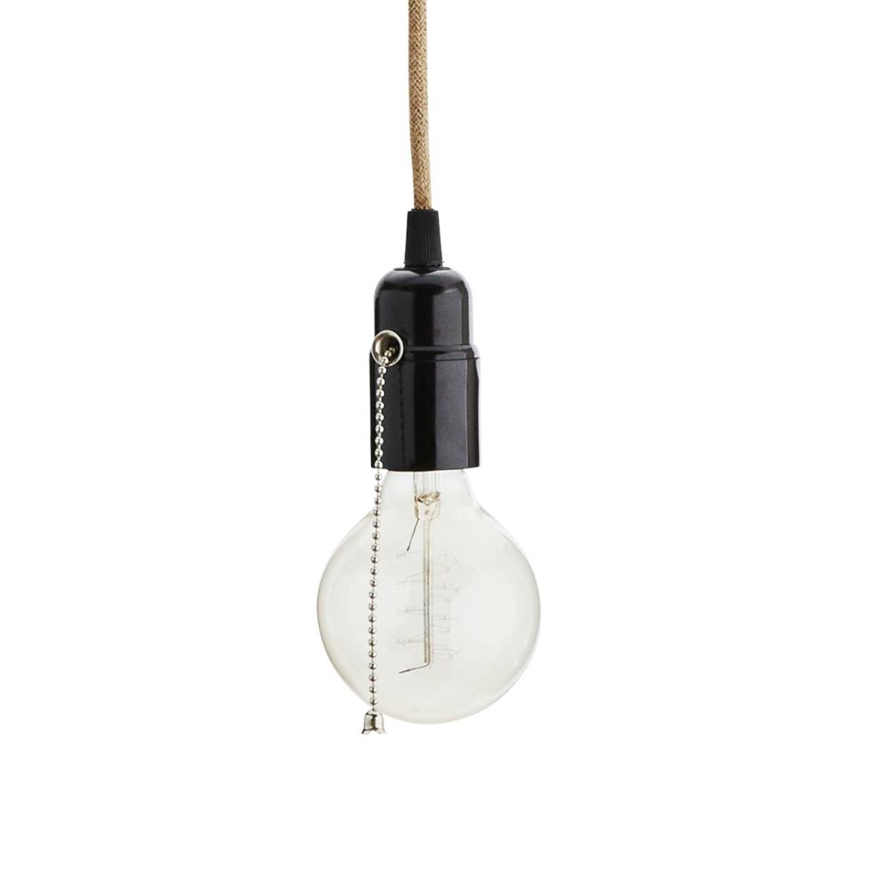 Flott lampekabel i jute med en kontakt i form av en kul kjede som henger på lampefestet. Pære følger ikke med!