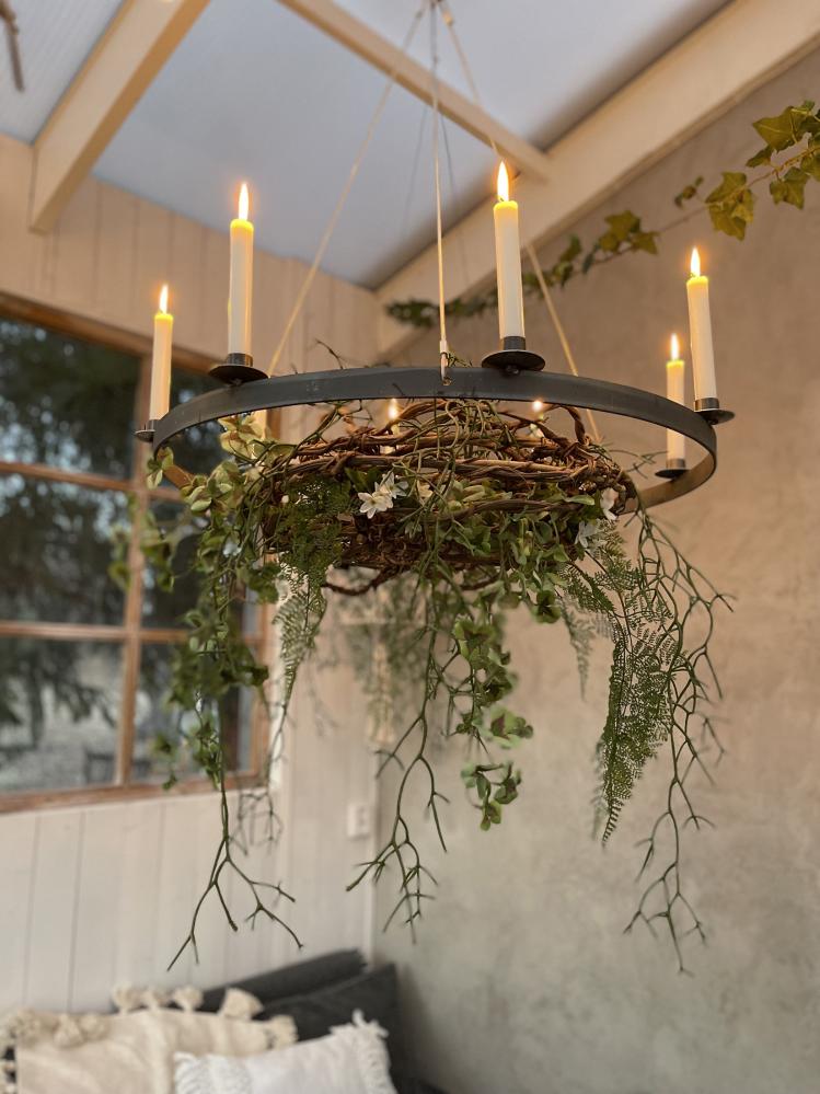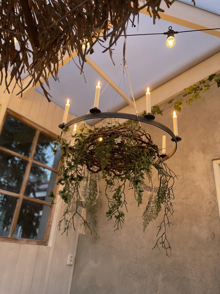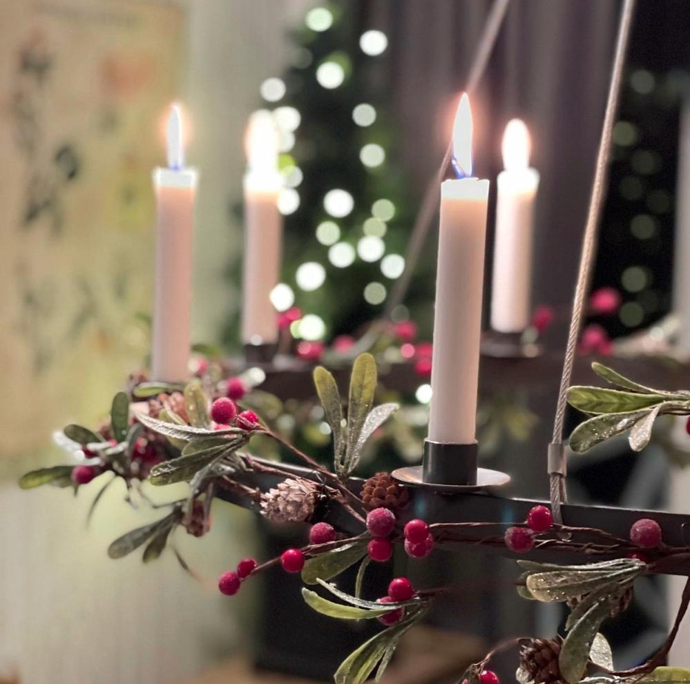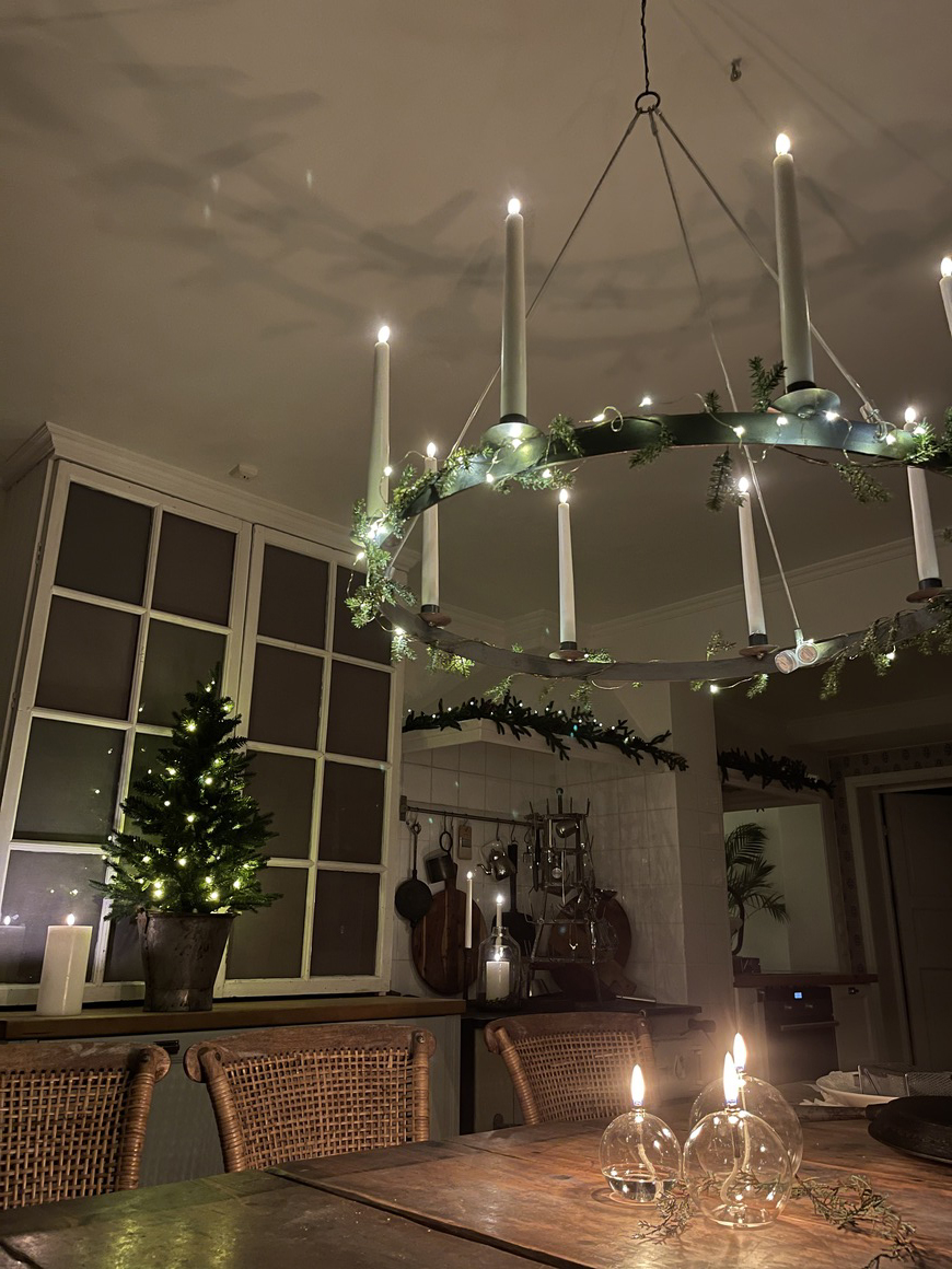 Jättefin ljuskrona. Passar perfekt i vårt uterum. Enkel att dekorera.