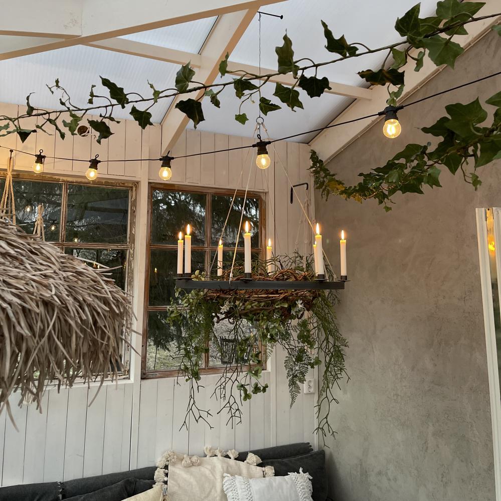 Vi blev väldigt nöjda med ljuskronan. Den blev perfekt i vårt uterum.