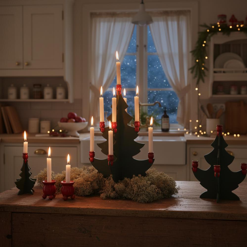 Lysestake - Trejuletre - Vintage Juledekorasjon