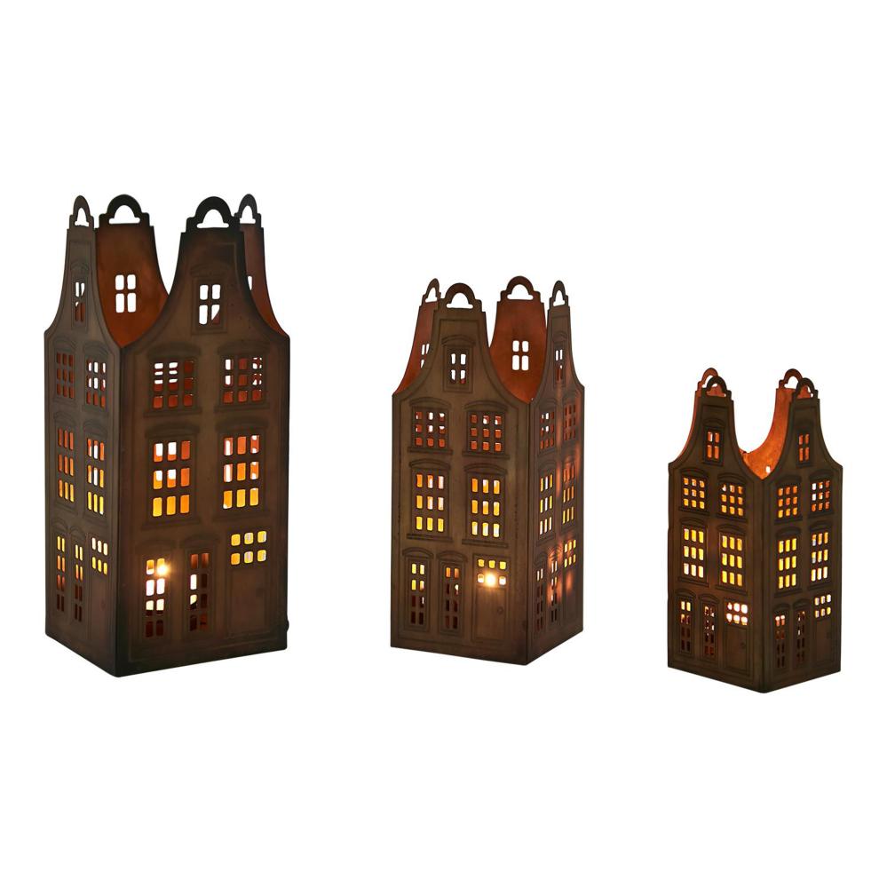Vakre lyshus i metall. Den vakre fargen heter antikk messing.Denne modellen av huslykt er helt åpen på toppen slik at du selv kan velge om du vil ha blokklys, telys eller batteridrevne lys.