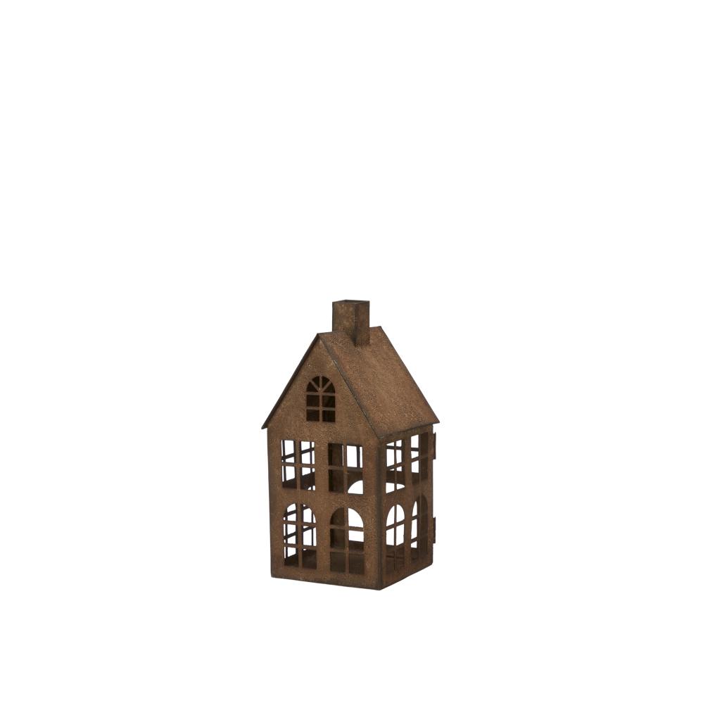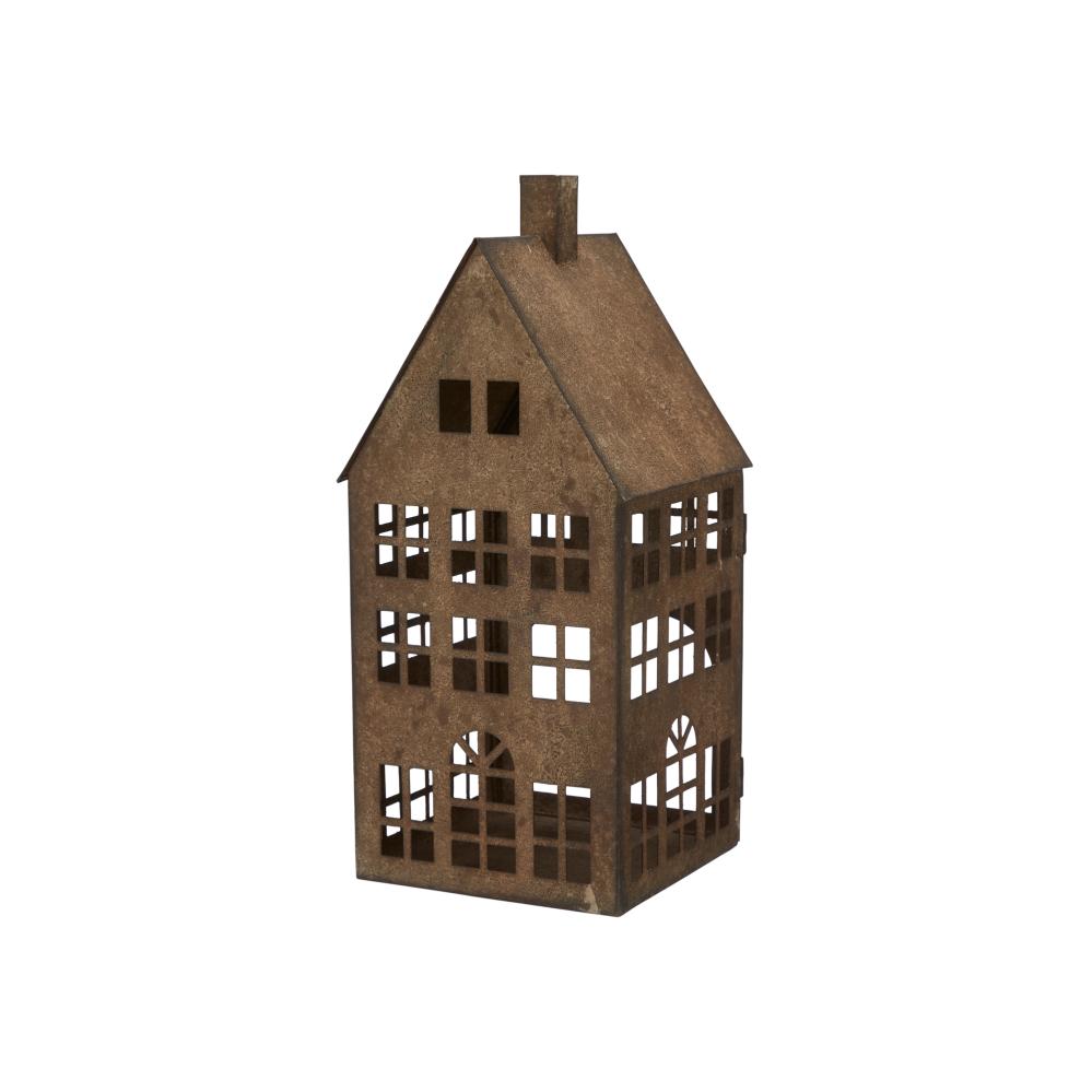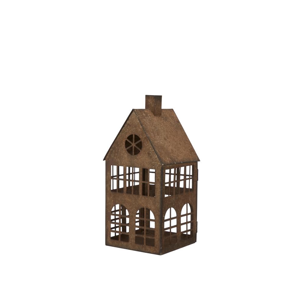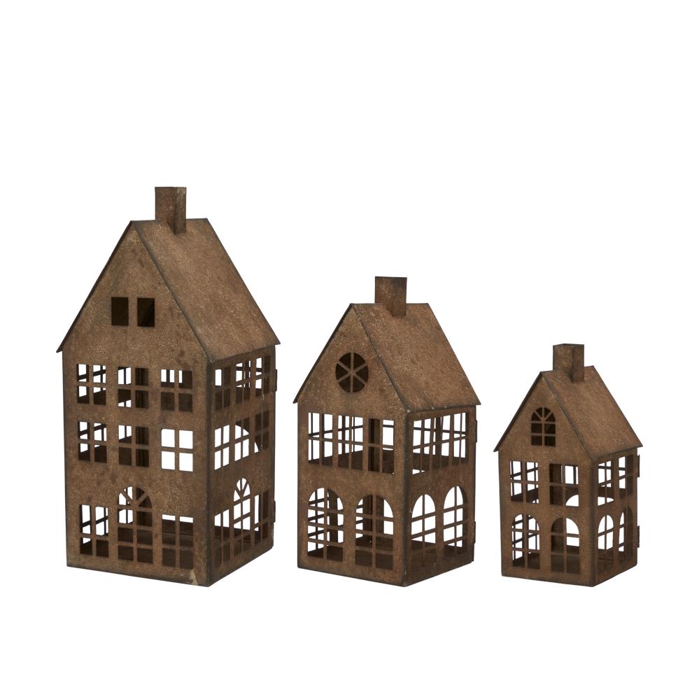 Lyslykter formet som hus. Metallhus for blokklys. Stilrene lykter som passer til mange interiørstiler da de er så rene i formen.