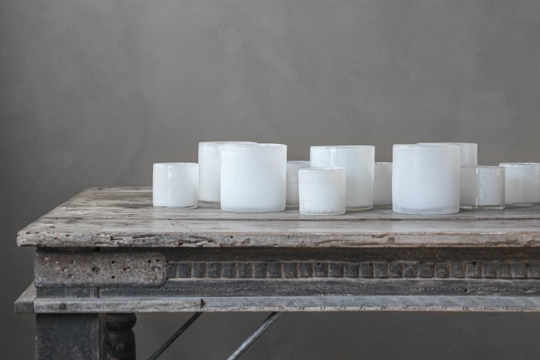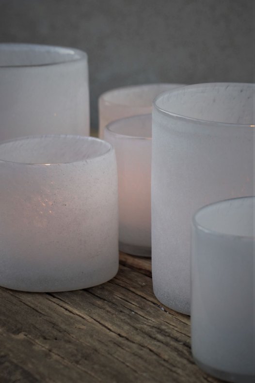 Vakker hvit lyslykt. Lyktene er håndlaget i munnblåst glass, så hver lykt er unik.