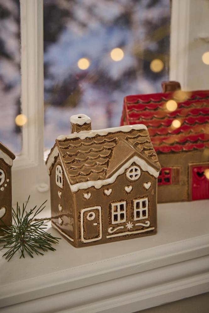 Skap den perfekte julestemningen med dette herlige keramiske pepperkakehuset dekorert med søte detaljer i hvit glasur. Plasser et telys eller en lysslynge inni den slik at lyset skinner gjennom de små vinduene. Huset er en del av Ib Laursens linje av keramikkhus, som tilbys i et bredt utvalg av størrelser, farger og design. Perfekt for deg som ønsker å skape en personlig samling.