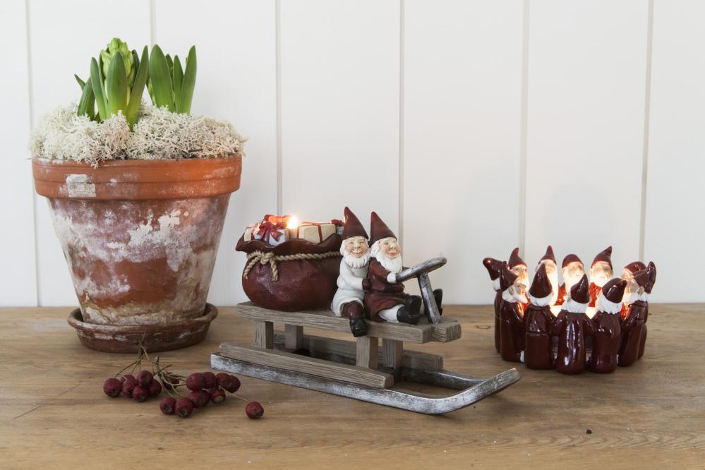 Tolv nisser står samlet i en ring og skaper en gledelig julaften som om de har vært der i en evighet. De varmer seg sammen i lyset av et varmelys, og hver av dem har fått sitt unike uttrykk og karakter. Det er som om de bærer minner fra en svunnen tid og tar oss tilbake til den nostalgiske følelsen av en tradisjonell jul, til tross for at de er nye bekjentskaper i hjemmet vårt. Gamle og nostalgiske julepynt som om det er tatt fra mormors julehjem da man var liten.