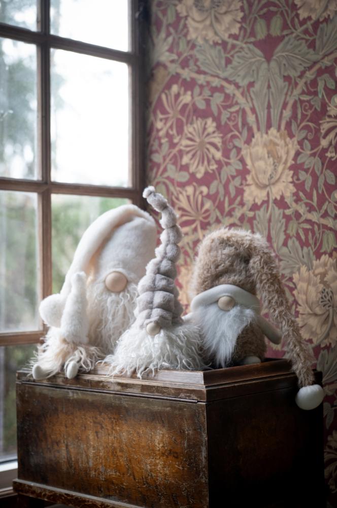 Søt nisse i tekstil som sprer varme og julestemning i hjemmet ditt, uansett hvor du plasserer den. Med sitt myke skjegg og sjarmerende uttrykk er den den perfekte dekorasjonen til jul. Passer perfekt på vinduskarmen, hyllen eller som en koselig detalj under juletreet. Match med lignende nisser for ekstra stemning.