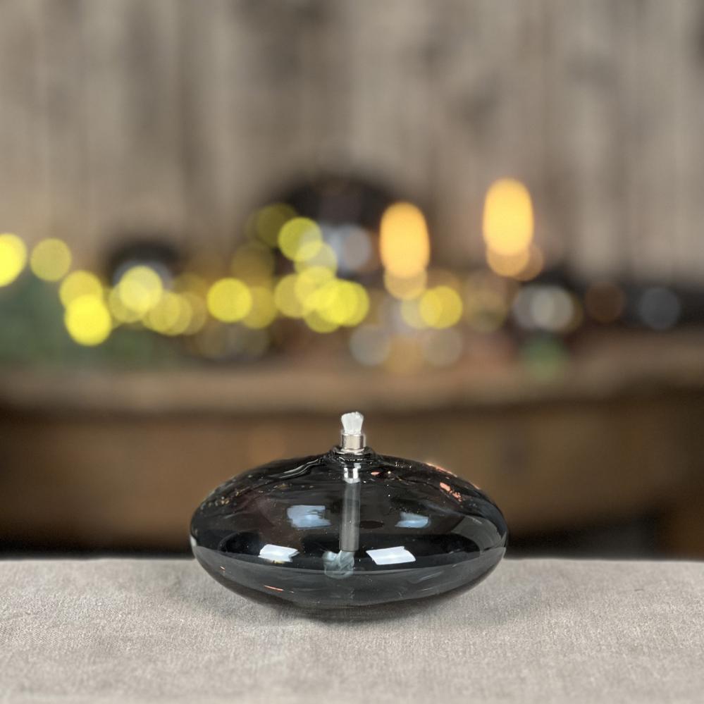 Oljelampa S - Glas - Rund Platt Ellips - Rökgrå - Ø10 cm