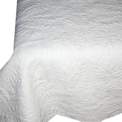 Jättefint hvitt overkast med et mønster sydd med hvit tråd. Bølgete kant nederst. Passer til dobbeltseng eller for å dekke over en sofa :-)