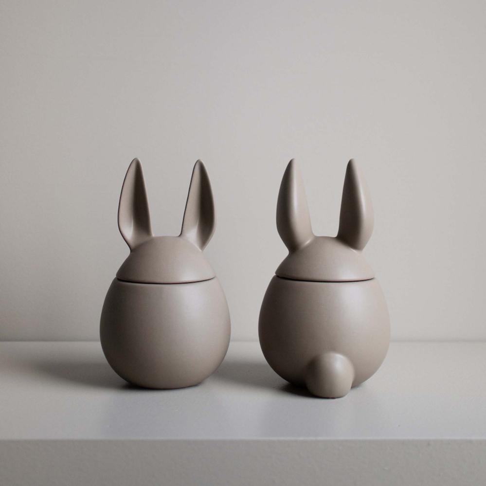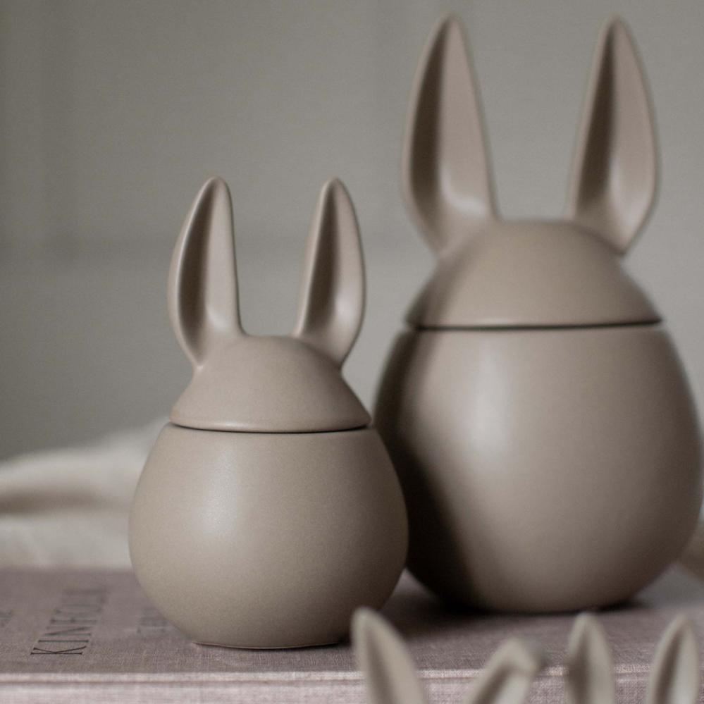 Trendy og vakkert påskeegg i grå/brun keramikk i fargen vi kaller Dust. En herlig godisskjul formet som et egg med kaninører. Stilren og helt fantastisk etter vår mening! Tåler oppvaskmaskin og er mattrygg.