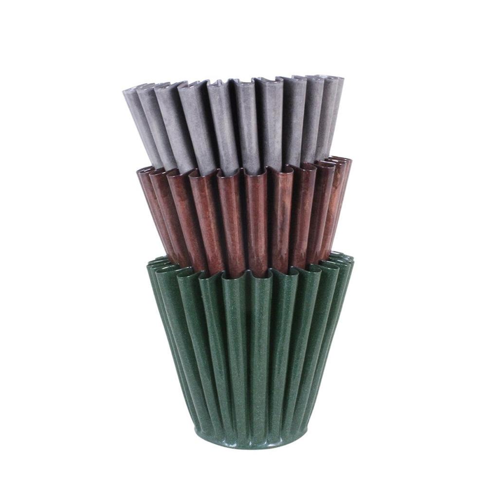 Potte med vackert veckade kanter som førenar en industriell stil med tidløs elegans. Tillverkad i plåt dær den ojæmna ytan framhæver både charm og karaktær. Ronja-serien finns i flera storlekar og farge, perfekt att mixa og matcha