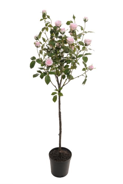 Oppstammet rose i lys rosa og hvitt - Kunstplante av absolutt beste kvalitet - Svært naturtro! Så fin i uterommet, stuen, drivhuset eller på balkongen. Passer utmerket i offentlige miljøer som kontoret, hotellresepsjonen, restauranten eller kafeen.