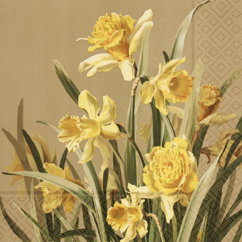 Se hvilke magiske servietter! Tenk på hva disse kan gi det lille ekstra til din allerede vakre borddekking i form av varme og farge. Motivene er både romantiske og elegante med planter, frukter og bær. Noen bilder er hentet fra gamle bøker og skoleplansjer og lignende, mange fra 1700-tallet. Andre er hentet fra boken Historia Plantarum, utgitt rundt midten av 1500-tallet.