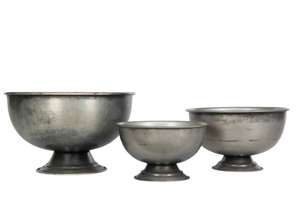 Superfin skål på i cloudy/rusty färg fot i metall. Modell som en Champageskål på fot. Använd som blomkruka eller eller fyll den med vackra stenar och ställ blockljus i den. Den största storleken kan användas som till vinkyl. Superfin! Färgen inuti champagneskålarna kan vara svagt flammig.