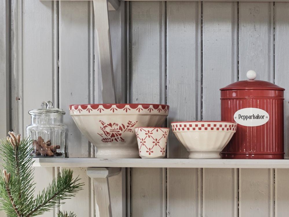 Vakker skål i steintøy med håndmalt dekorativt bånd i rødt. Mønsteret i serien Marion bringer tankene til den franske landsbygden. Flotte å kombinere og blande med de andre motivene/fargene. Variasjoner kan forekomme i porselenet.