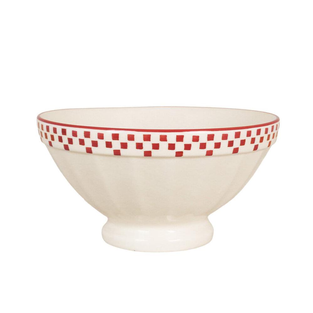Vakker skål i steintøy med håndmalt dekorativt bånd i rødt. Mønsteret i serien Marion bringer tankene til den franske landsbygden. Flott å kombinere og blande med de andre motivene/fargene. Variasjoner kan forekomme i porselenet.