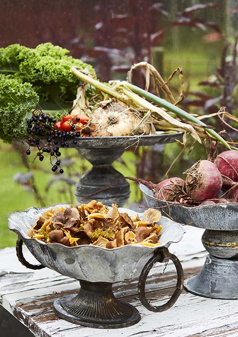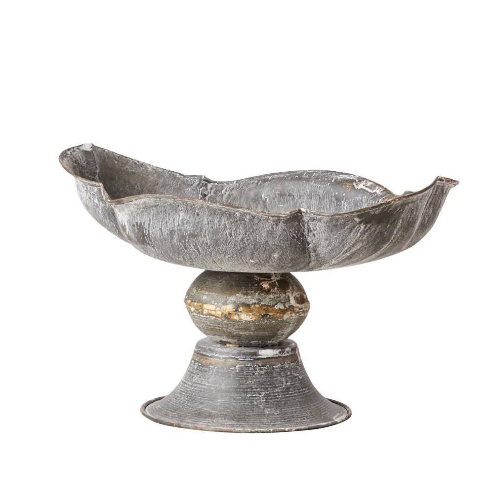 Skål på fot i galvanisert stålplate. Stilen er slitt vintage og helt fantastisk hvis du spør Frøken Fræken.