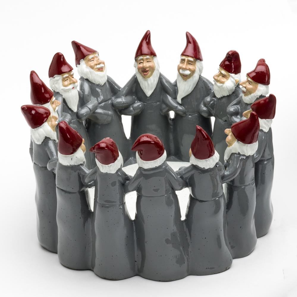 Tolv tomtar står samlade i en ring och skapar en fröjdefull julafton som om de varit där i en evighet. Var och en av dem har fått sitt unika uttryck och karaktär. Det är som om de bär på minnen från en svunnen tid och för oss tillbaka till den nostalgiska känslan av en traditionell jul, trots att de är nya bekantskaper i vårt hem. Fyll skålen med julnötter eller julgodis. Gammalt och nostalgiskt julpynt som taget från mormors julhem när man var liten.