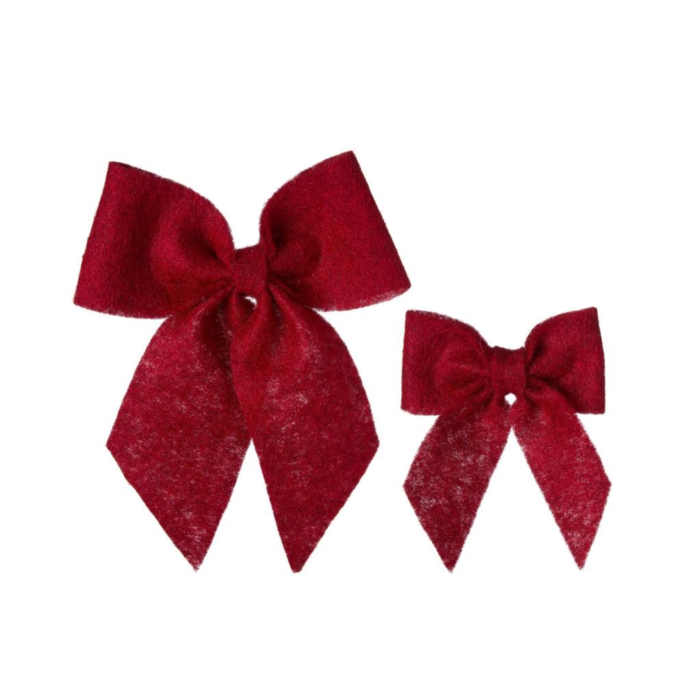 Nydelige røde tekstilsløyfer i to størrelser. Perfekte til julepynt, gaveinnpakning, blomsterarrangementer, festbord eller som dekor på kranser, klær og gaver. Opphenget på baksiden gjør dem ideelle å henge på juletreet. En tidløs dekorasjon som passer like godt til hverdag som til fest. Finnes også i hvitt – fine å mikse og matche.