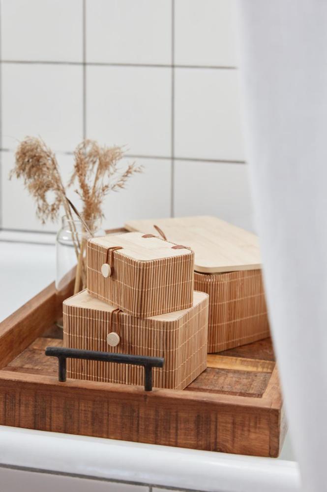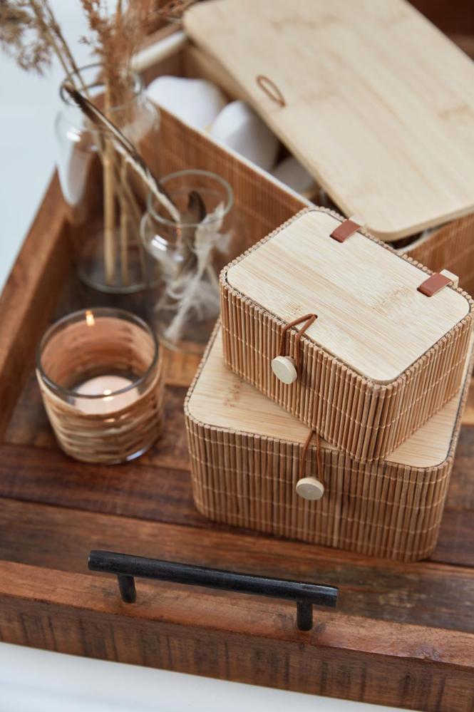 Brettet er laget i India av resirkulert tre fra rivningsmaterialer. Håndtakene er laget av metall. Brettet er ekstremt solid og kan bære mye. Det vil være kvister, sprekker og fliser i treet, og treslaget vil variere.