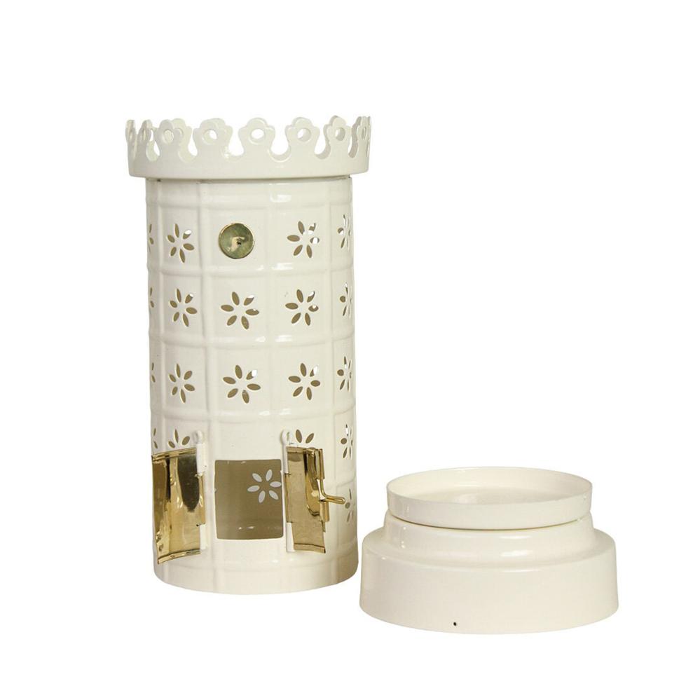 Värmeljushållare - Kakelugn - Hvit - Ø9,5 x H21 cm