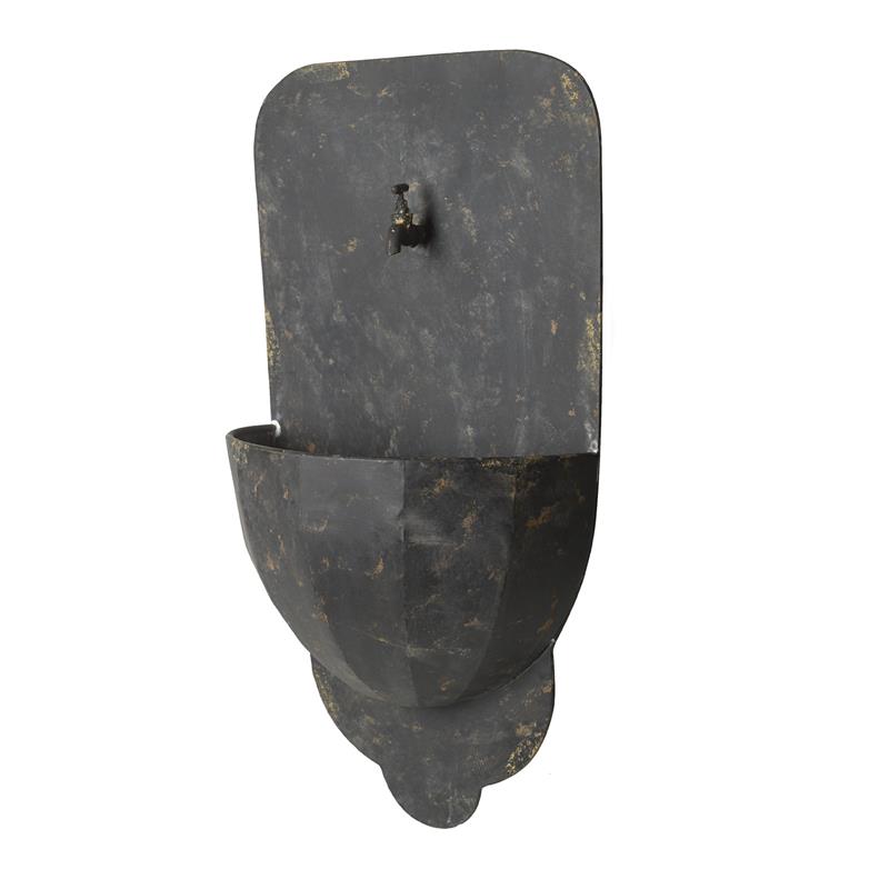 Superkul stor metallkrukke for vegg i modell av en gammel vask med kran. I slitt vintagestil i svart. Heng den på veggen. Bruk den som blomsterkrukke eller til oppbevaring. Rå vintage metall i svart gir en herlig rustikk industriell følelse! OBS! Plast den for sikkerhets skyld innvendig hvis du vil ha blomster i den. Kranen fungerer ikke, den er kun dekorativ.